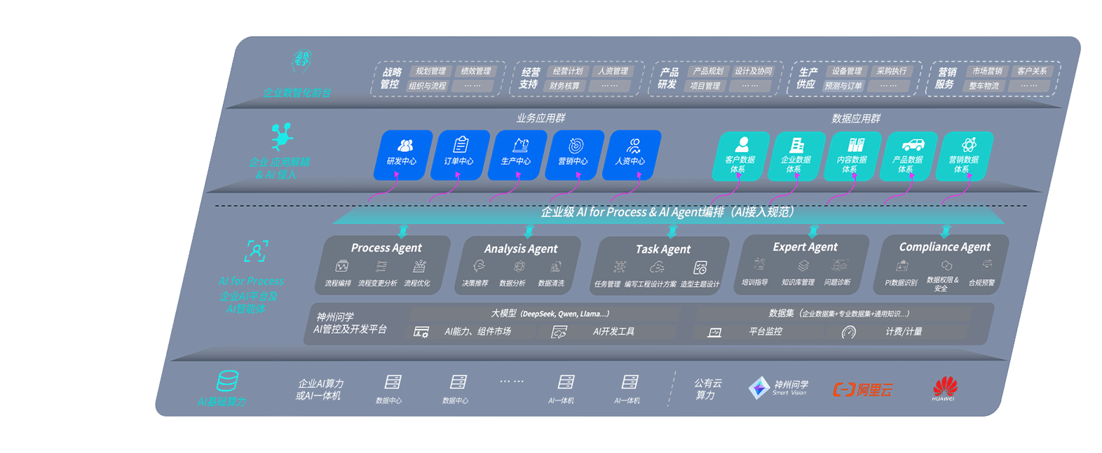 端到端的一站式AI工作空间深度融合了从企业战略规划到日常经营的全流程业务板块,,,定向解决车企内部领域多、、、、部门多、、、、链条长、、、场景碎片化等难题,,,,支持车企快速构建以AI为核心的生产力写作体系,,,实现任务执行与AI能力的无缝集成与交互